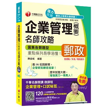 本書獨家贈送郵政專家陳金城老師親授「企業管理、口試秘笈」線上家教課程市價1999元。