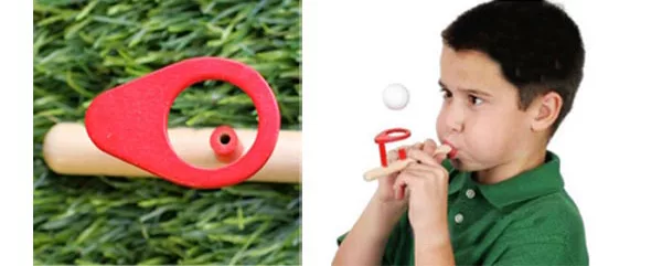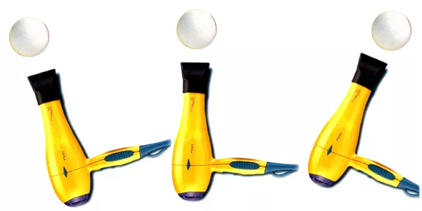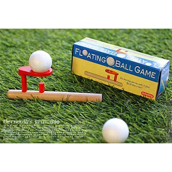 求經過吹氣管直直的往上浮,卻不會掉落這個是由『柏努力原理』形成的乒乓球或是保麗龍球受到強風往上吹時,乒乓球不但沒有被吹走,反而可以懸浮在吹口處, 不落下也不被吹走。這是因為乒乓球下方吹出的強風正好在球體的下方,致使球的正下方因氣體流速變大而氣壓降低,故使乒乓球受到向吹口處移動的驅動力,此力 和吹出的風作用於球體上往外推的作用力相互抵消時,球體即可在一定的高度處懸浮。