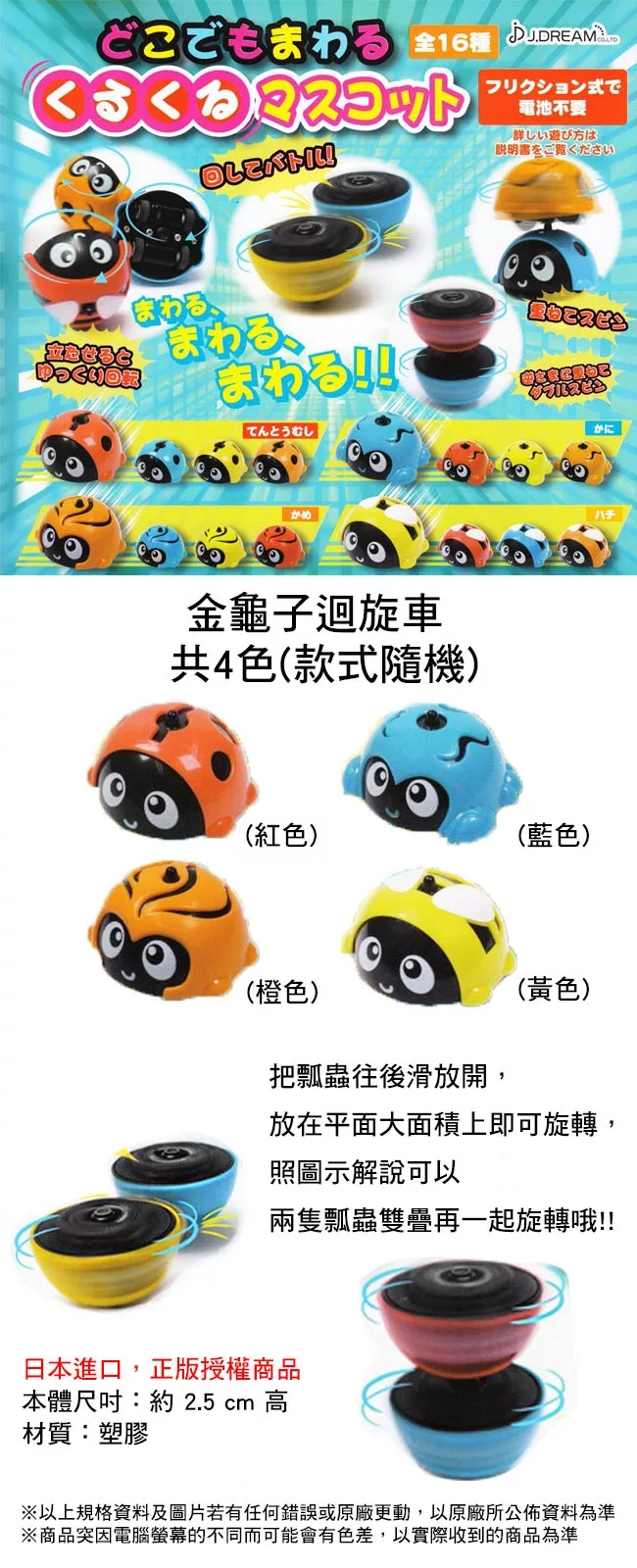 【日本進口正版】四色一組 款式隨機 金龜子迴旋車-玩具![]()