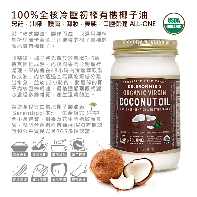 Dr.Bronner’s 全核冷壓 有機初榨椰子油2入禮盒 414ml-14ozX2 評價
