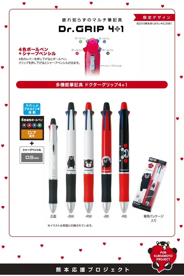 PILOT限量熊本熊健握4+1多功能筆 紅桿黑